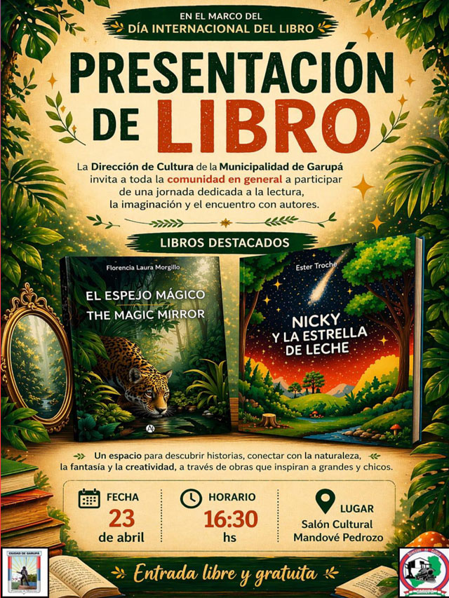 AGENCIA MISIONES.UNO | La Municipalidad de Garupá, a través de la Dirección de Cultura, organizará una jornada especial de presentación de libros el próximo 23 de abril, con entrada libre y gratuita en el Salón Cultural Mandové Pedrozo.