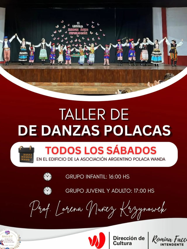 En la localidad de Wanda se desarrolla un taller de danzas polacas destinado a vecinos interesados en aprender y acercarse a esta expresión cultural. La propuesta es impulsada por la Dirección de Cultura, en articulación con la Asociación Argentino Polaca Wanda.